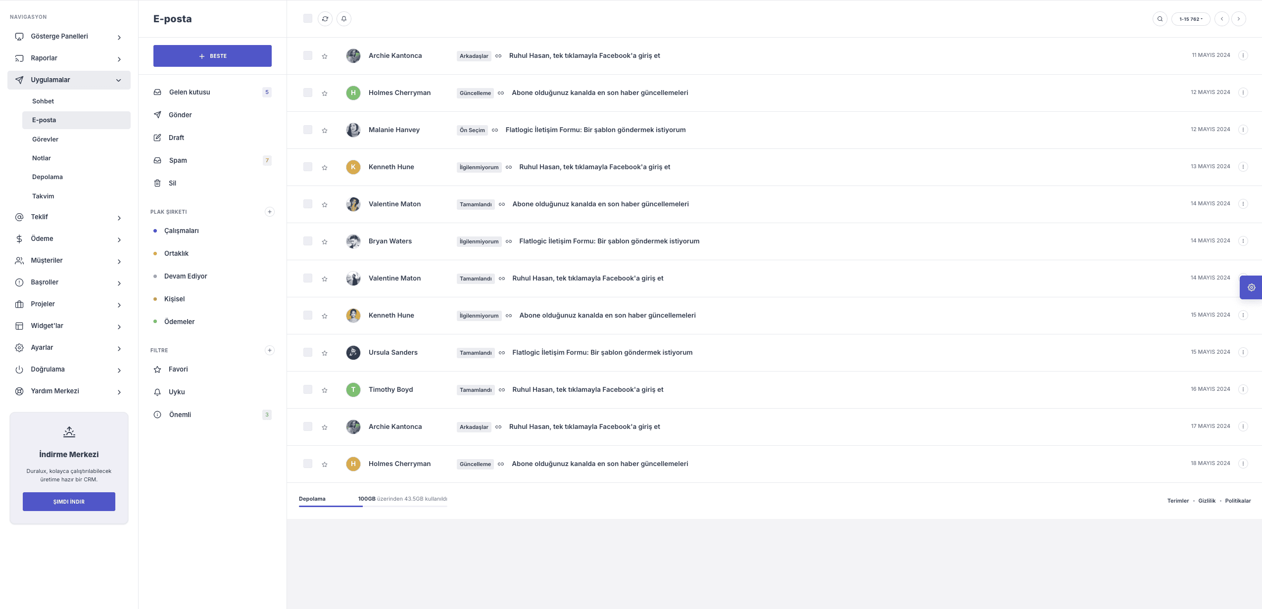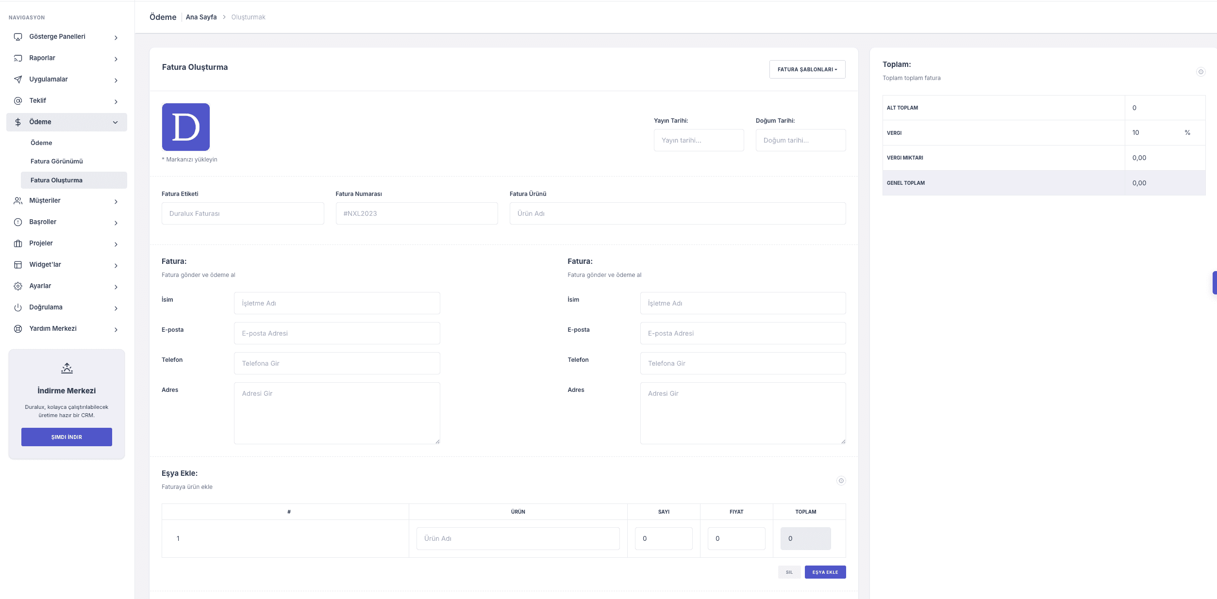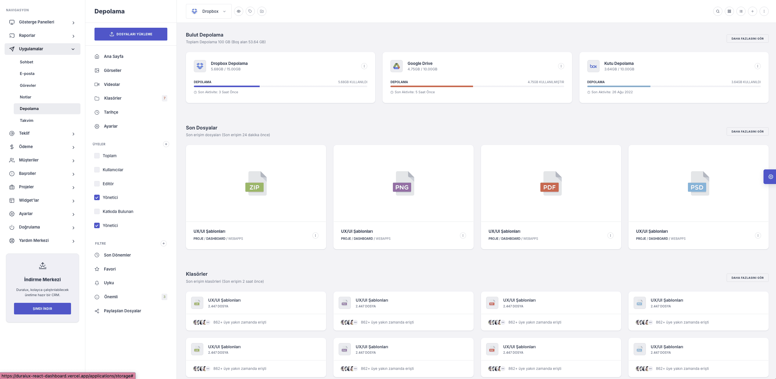 Duralux, farklı sektörlerdeki SaaS ve web uygulamalarına uyarlanabilecek esnek bir panel altyapısı olarak ele alınmıştır.