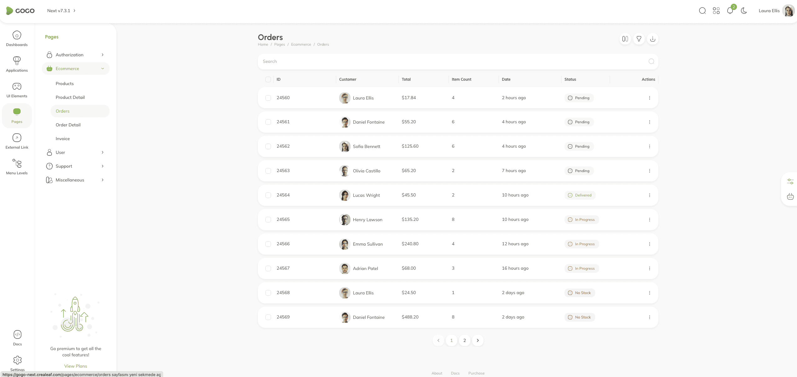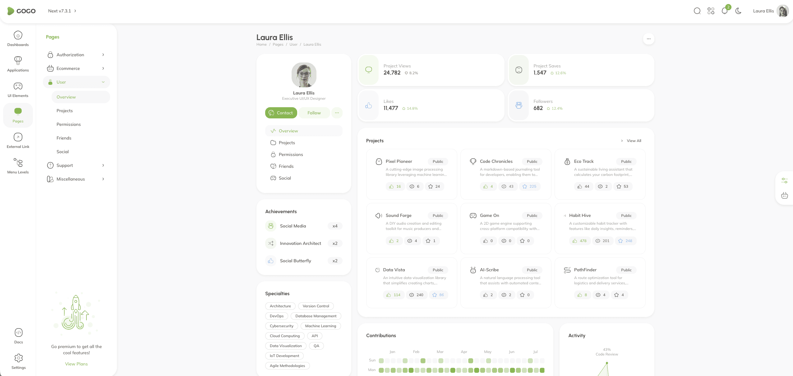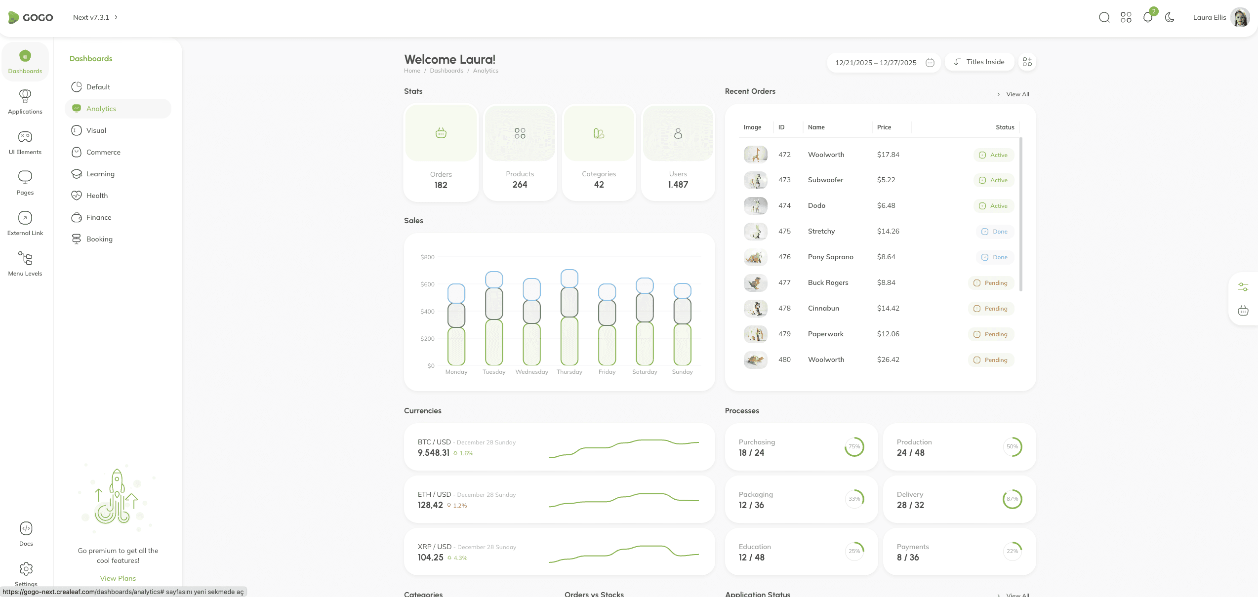 Sidebar navigasyon, üst bar kontrolleri, grafik bileşenleri ve veri tabloları ile eksiksiz bir admin deneyimi sunar.